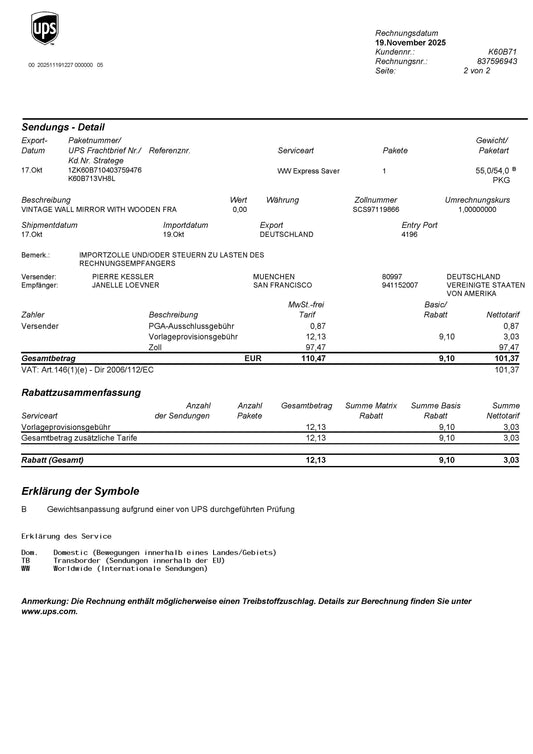 US IMPORT TARIFF VIA UPS For Anthem San Fransico Client Whipkey