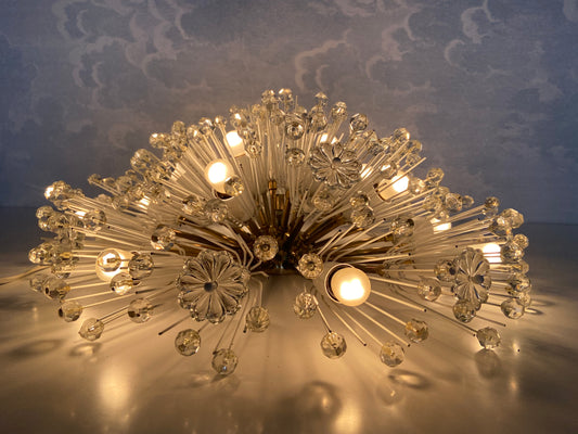 XL Stejnar Flush Mount Dandelion / Snowball Ceiling or Wall Light with Cut-Glass Crystals, Austria 1960s
