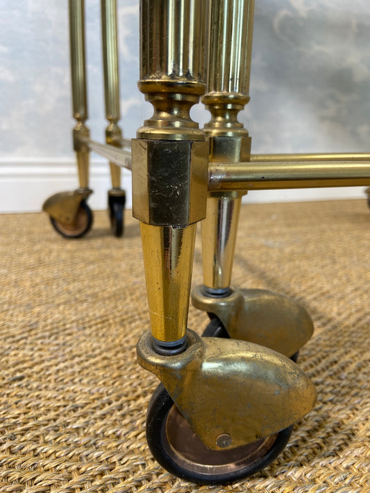 Attractive Pair of Nesting Serving Trolleys / Bar Carts with Removable Tray, France, 1950s