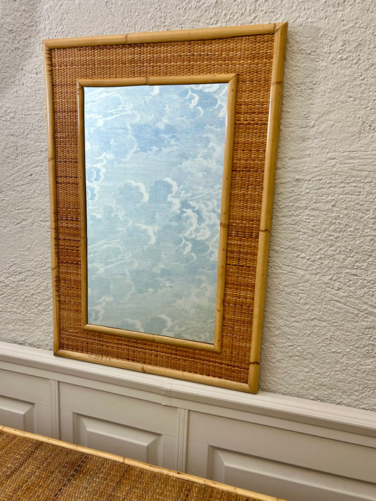 Bamboo & Rattan Wicker Wall Mirror, attr. to Dal Vera, Italy, 1970's