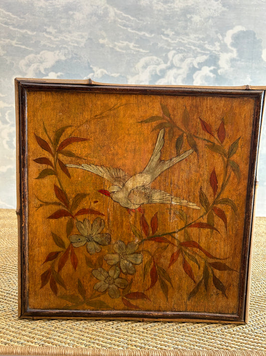 Bamboo Pedestal Table with Hand Painted Bird And Flower Motif, France, 19th Century