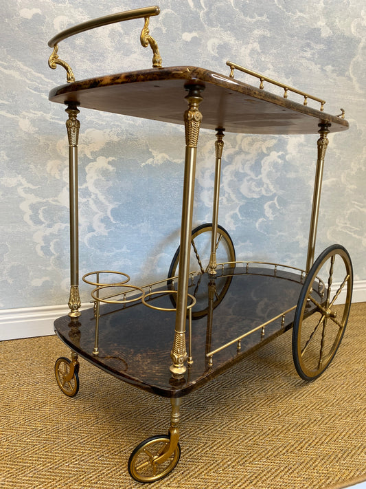 Brown ALDO TURA Bar Cart / Tea Trolly, Italian Design Classic from the 1960s with Brass Details