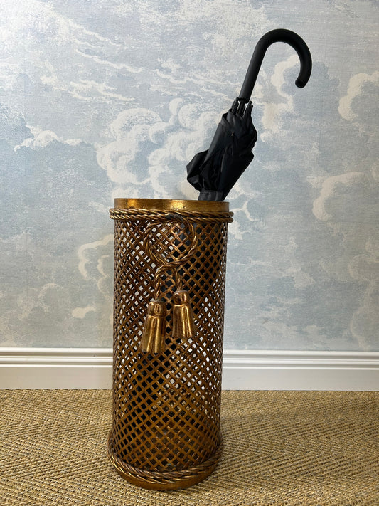 Gilded Umbrella Stand / Waste Paper Basket by Li Puma Firenze, Italy, 1950's Hollywood Regency
