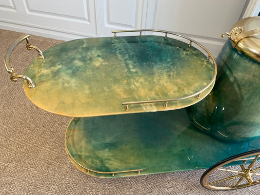Emerald Green ALDO TURA Pipe Bar Cart, Italy 1960s