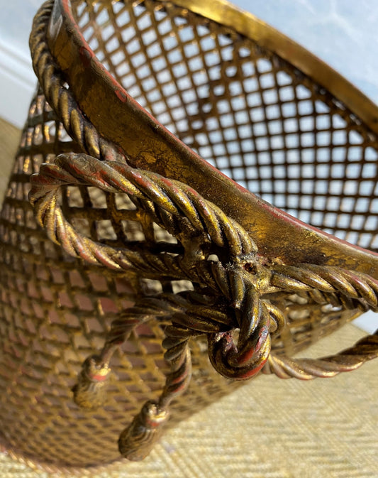 Italian Hollywood Regency Gilded Umbrella Basket / waste Paper Bin by Li Puma 50s (large)
