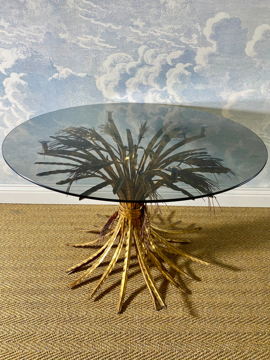 Hollywood Regency Wheat Palm Table Gilt Maison Jansen / Sergio Terzani Mid Century Coffee table Vintage