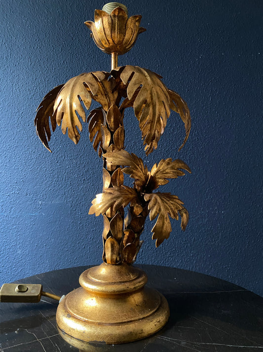 Hollywood Regency Gilt Metal Palm Tree Table Lamp by Hans Kögl, Germany, 1970s