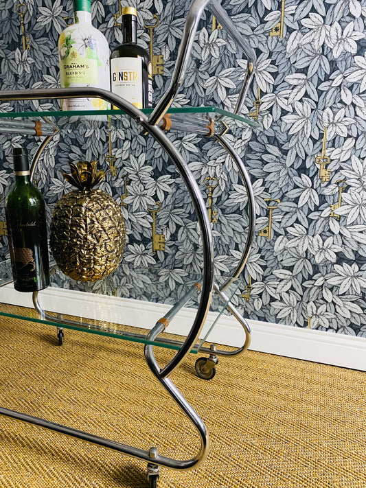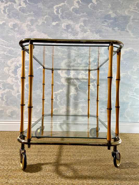 Bamboo Cocktail Trolley Bar Cart Attr. Maison Jansen, Vintage 60s Boho Midcentury Dry Bar