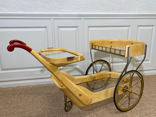 Cream Colored Aldo Tura Bar Cart Serving Trolly, Italy 1960s
