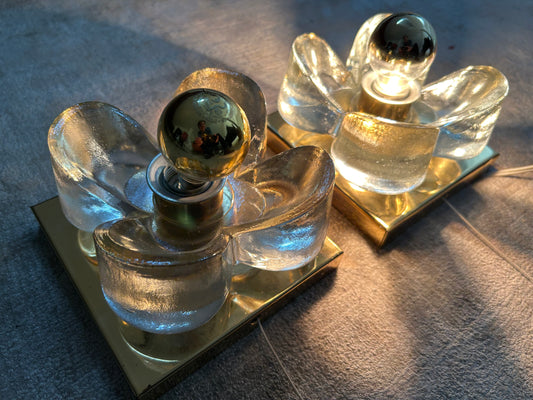 Pair of Crystal-Glass and Brass Sconces by SiSCHE, Hollywood Regency, Mid-Century Modern