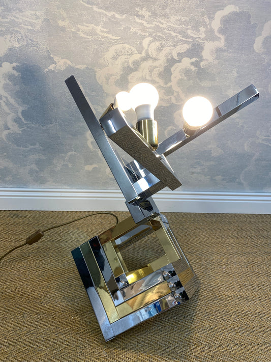 Very Large Brass and Chrome "Skyscraper" Table Lamp by B D Lumica in the style of Willy Rizzo, Spain, 1970s
