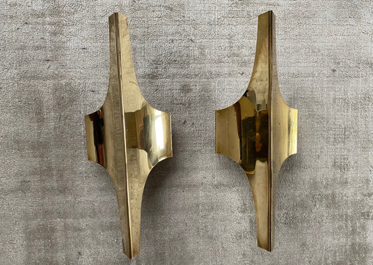 Pair of Doria Brass Sconces 70s Space Age Hollywood Regency