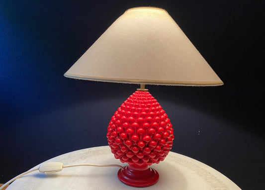 Mid Century pineapple/ artichoke table lamp Red Vintage Firenze Italy 70s