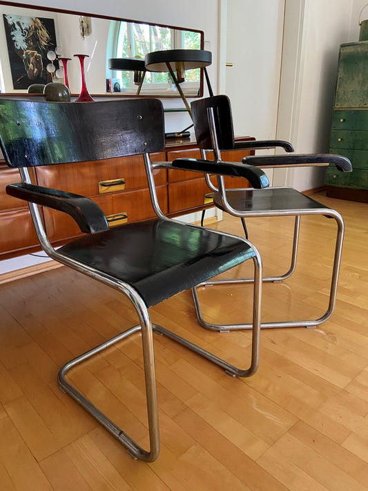 Pair of Original 1930s Tabular Chairs Vichr, Czech Bauhaus