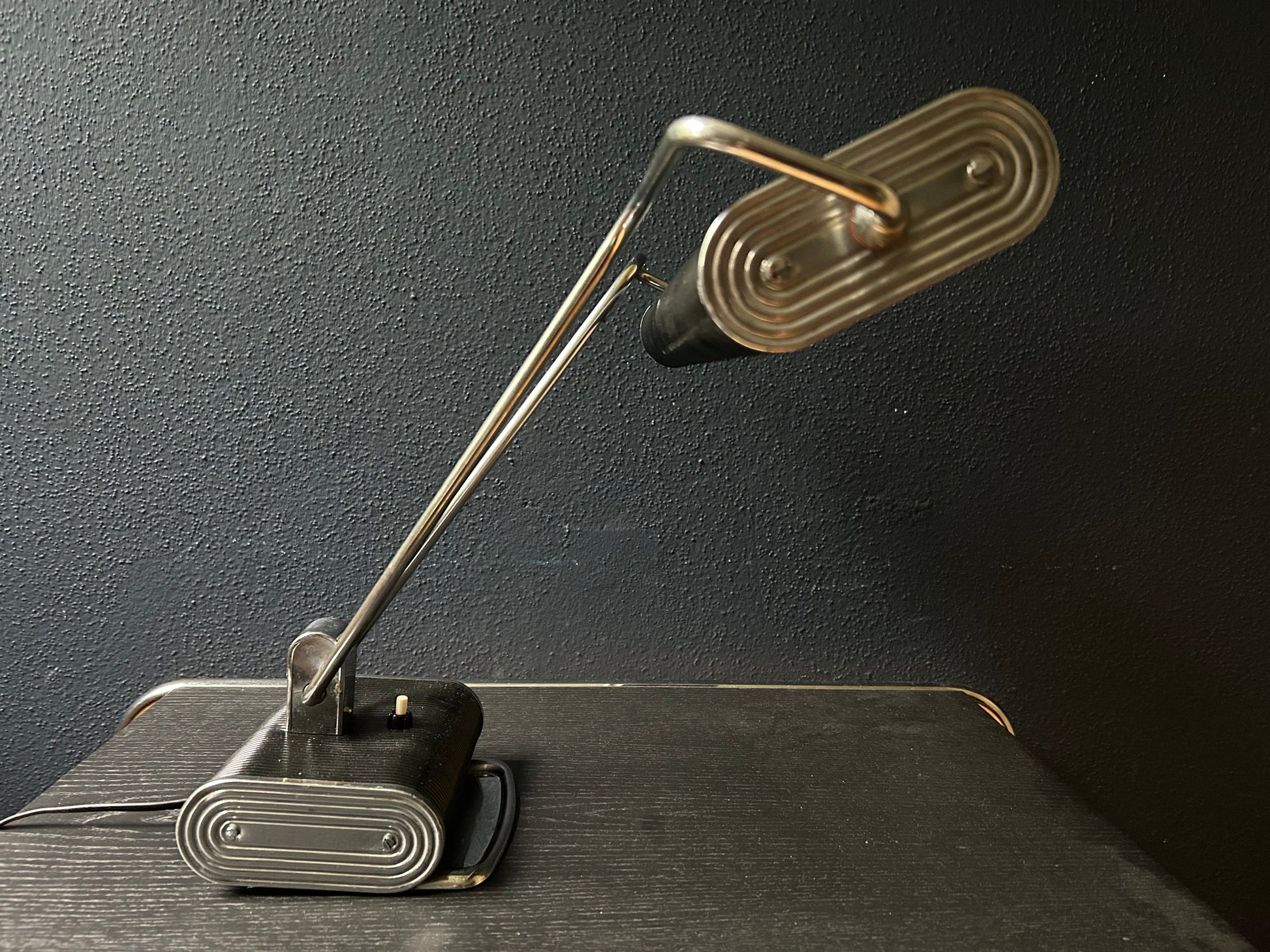 Black and Chrome Desk Lamp Model 71 by JUMO, France, 1960's