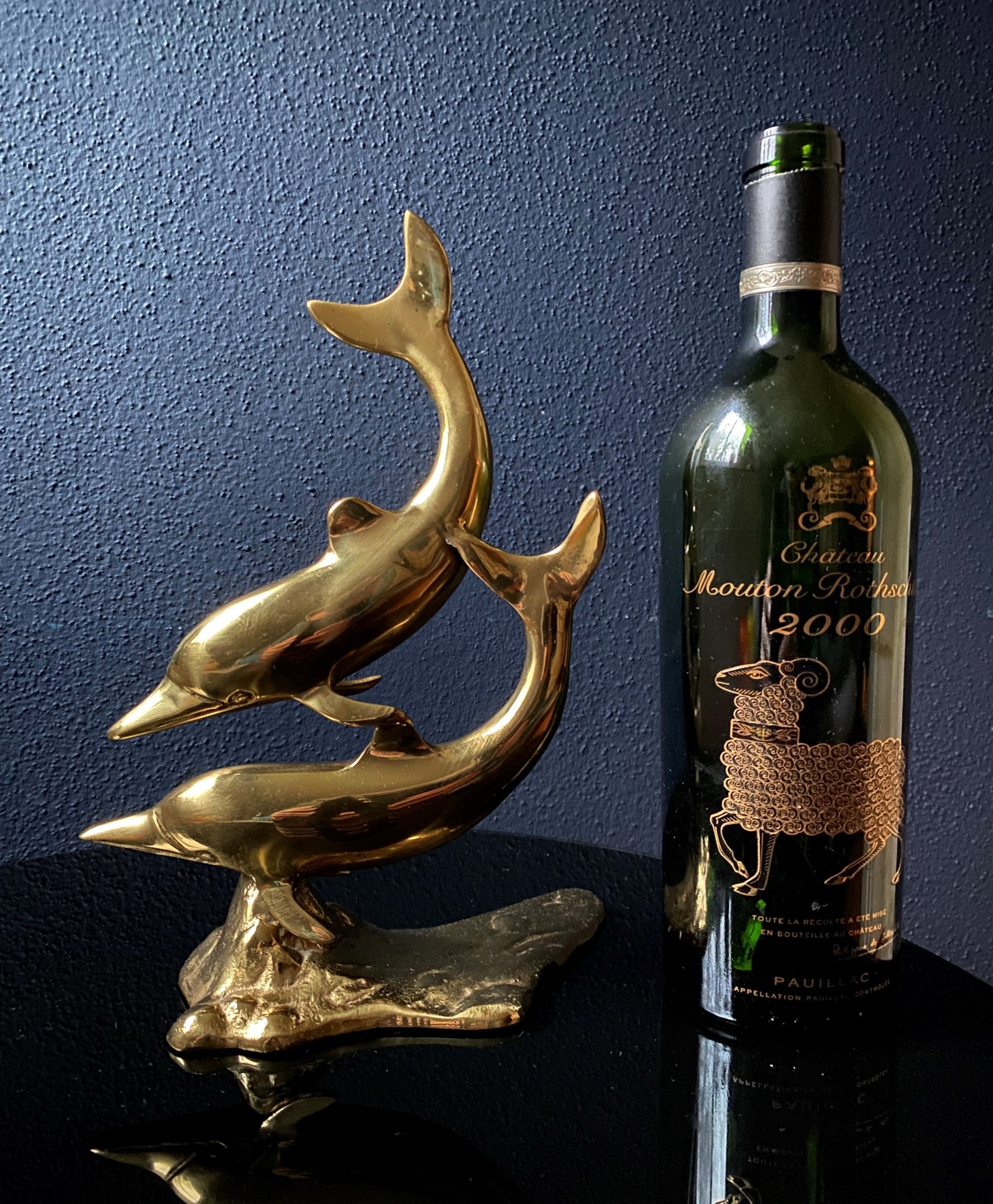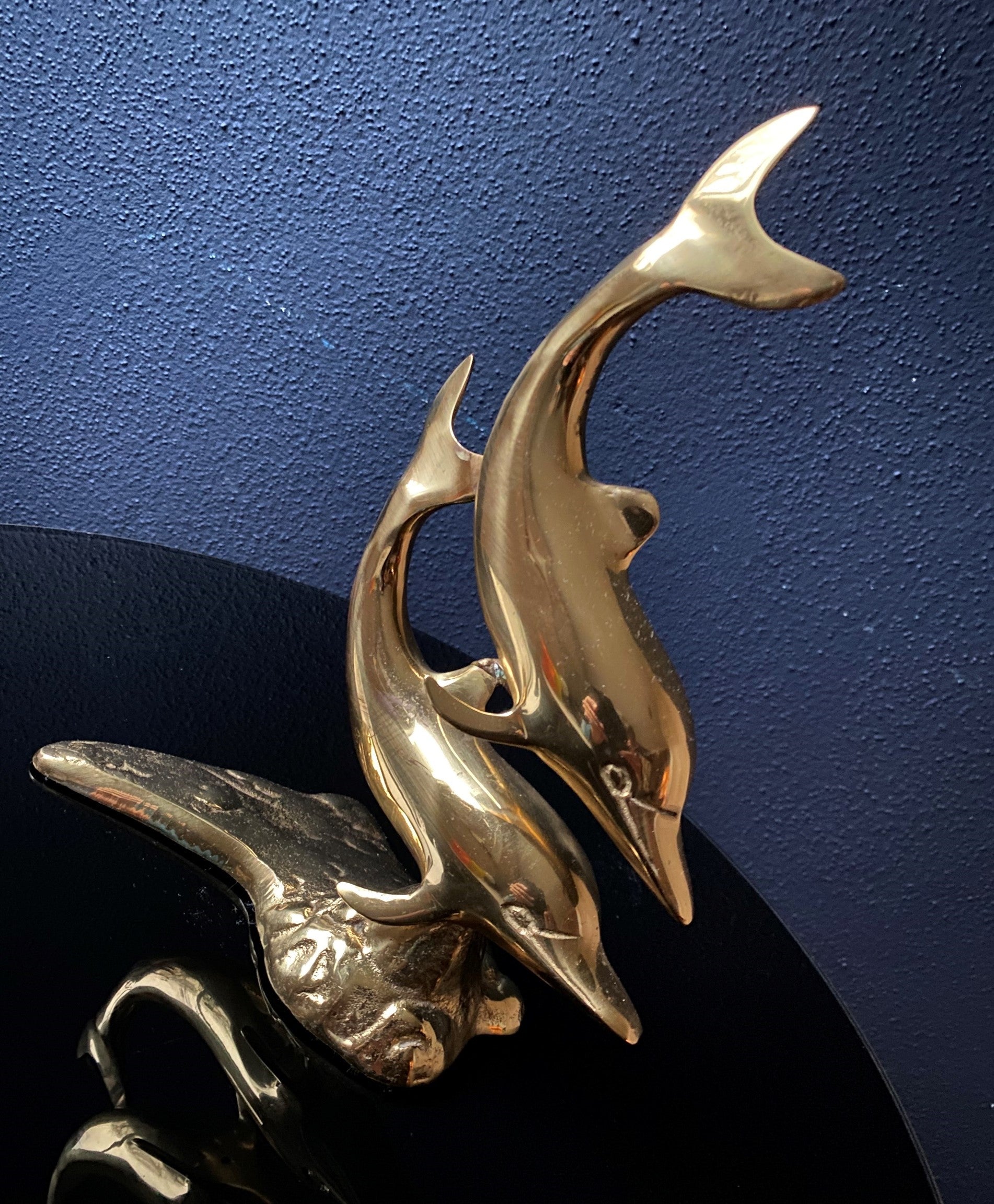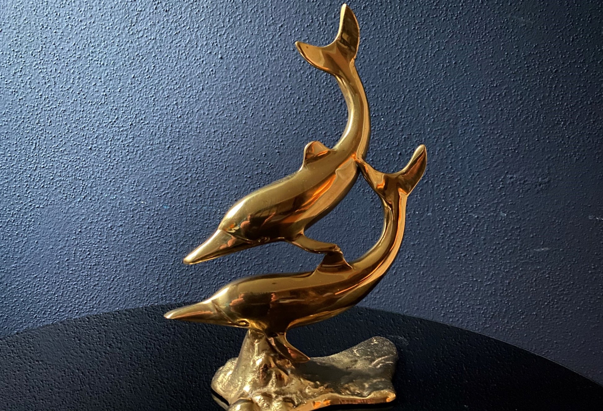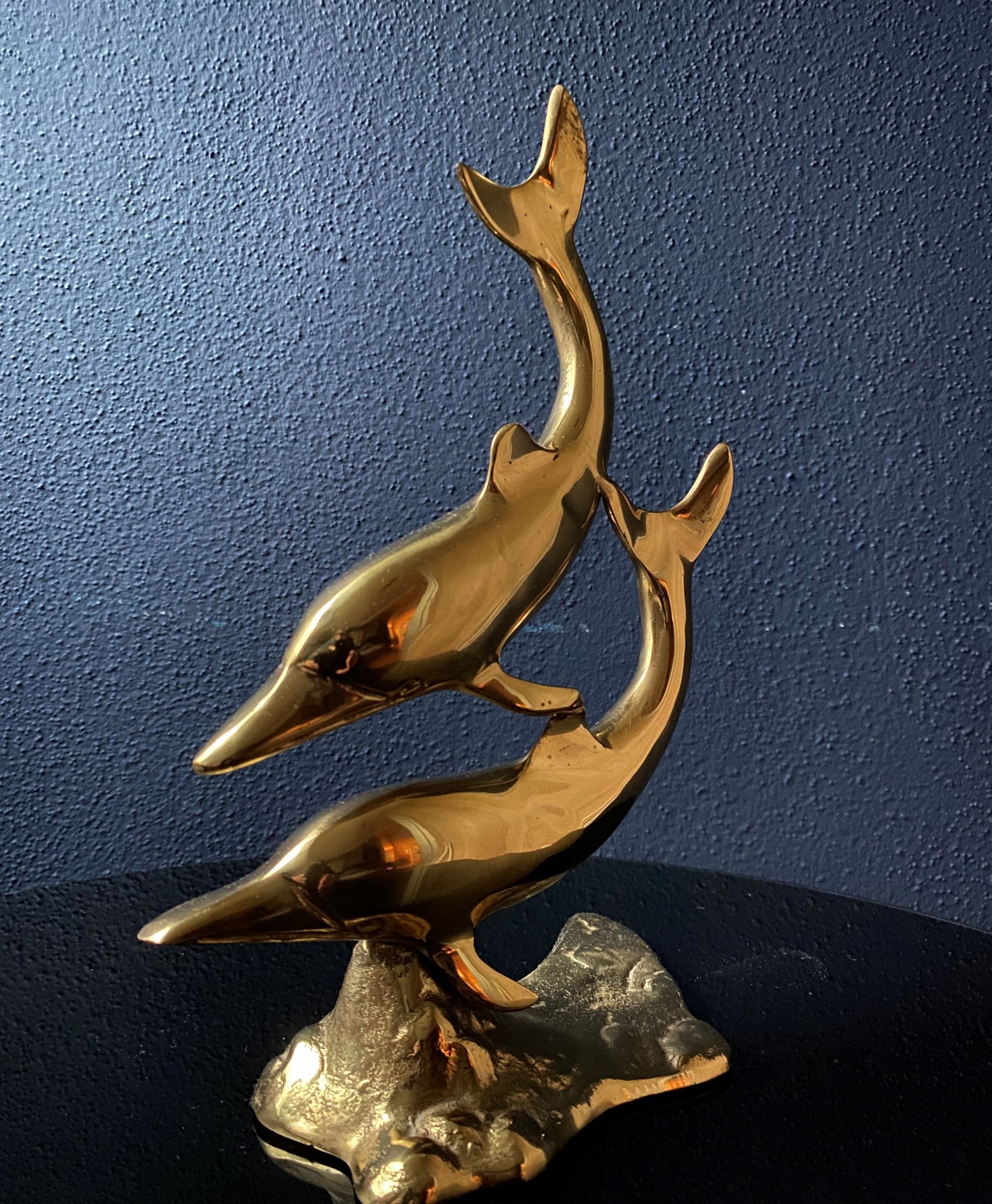 Brass Dolphins Sculpture 60s Mid Century Hollywood Regency 70s Vintage