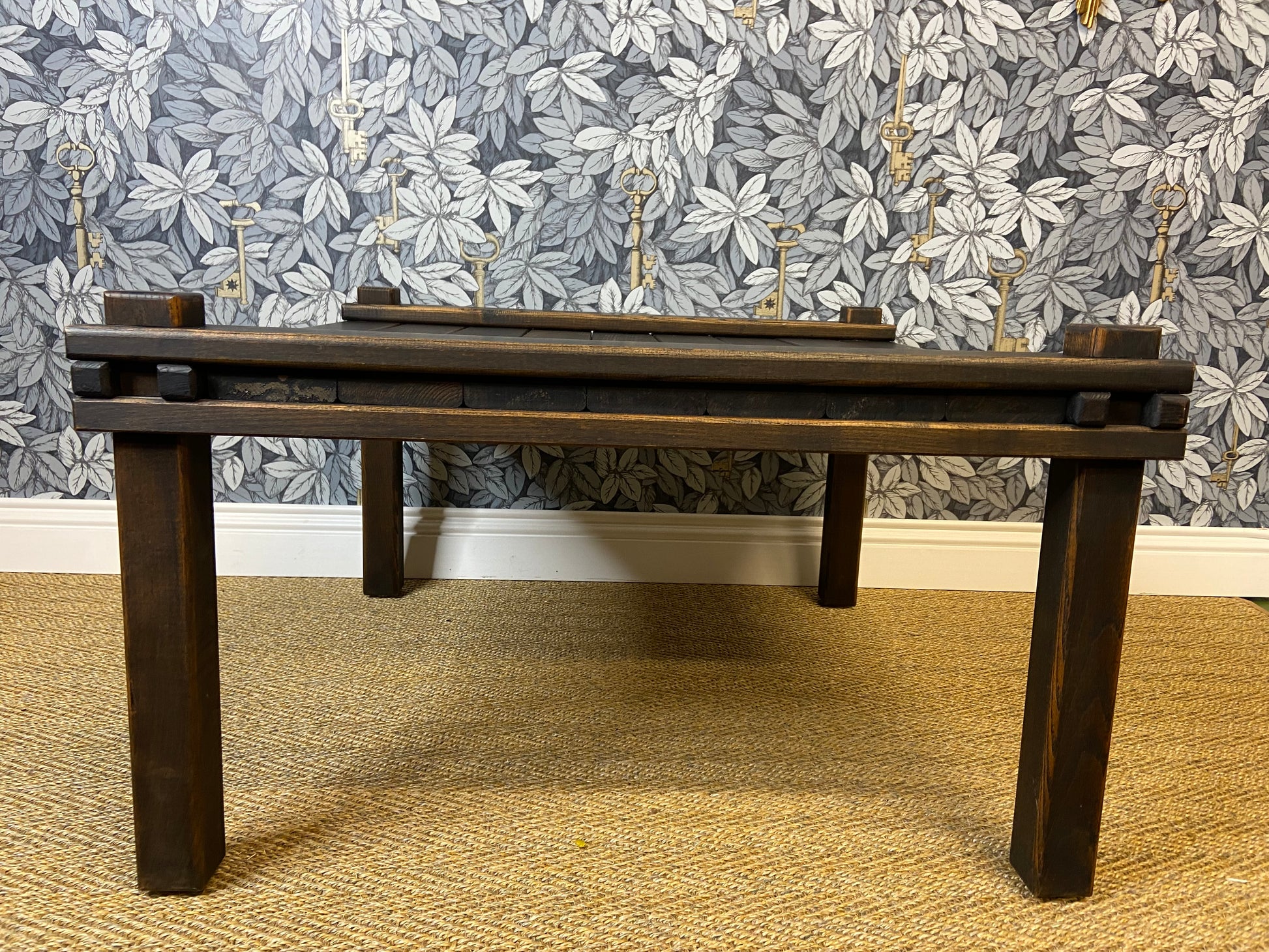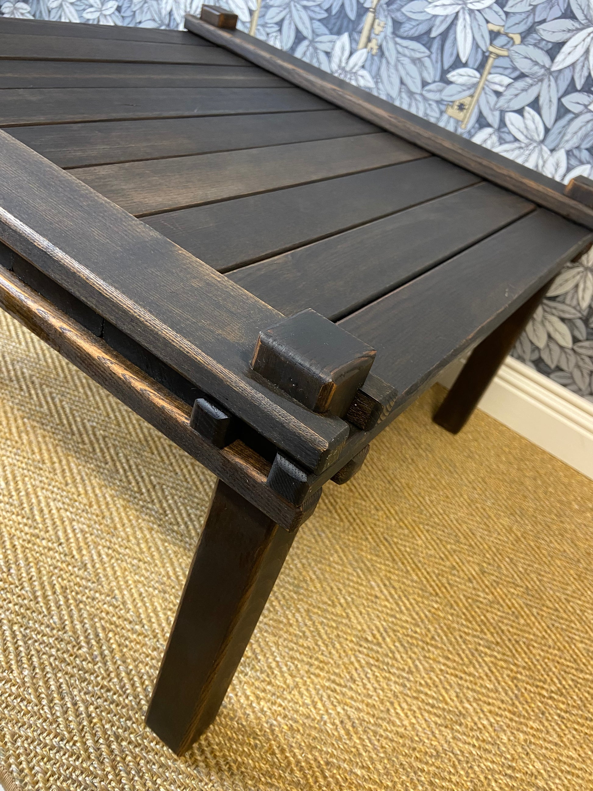 Consisting of solid wooden slats, all interlocking at right angles, the table can be easily assembled and disassembled within minutes. Despite its modular design, the table has remained in good sturdy condition with only few signs of its age and use - a testament to Lange's skills as a master of design.