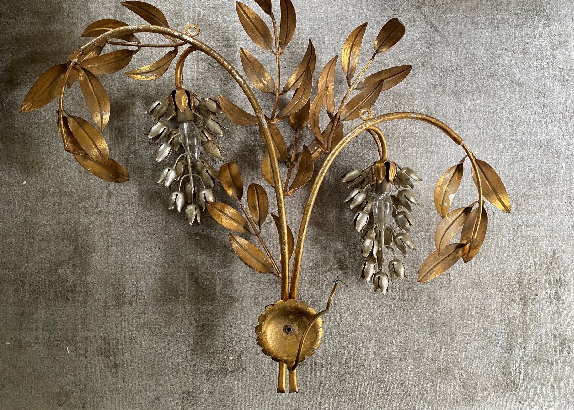 Hans Kögl L Wall light Pioggia D'oro Hollywood Regency 70s gilt sconce