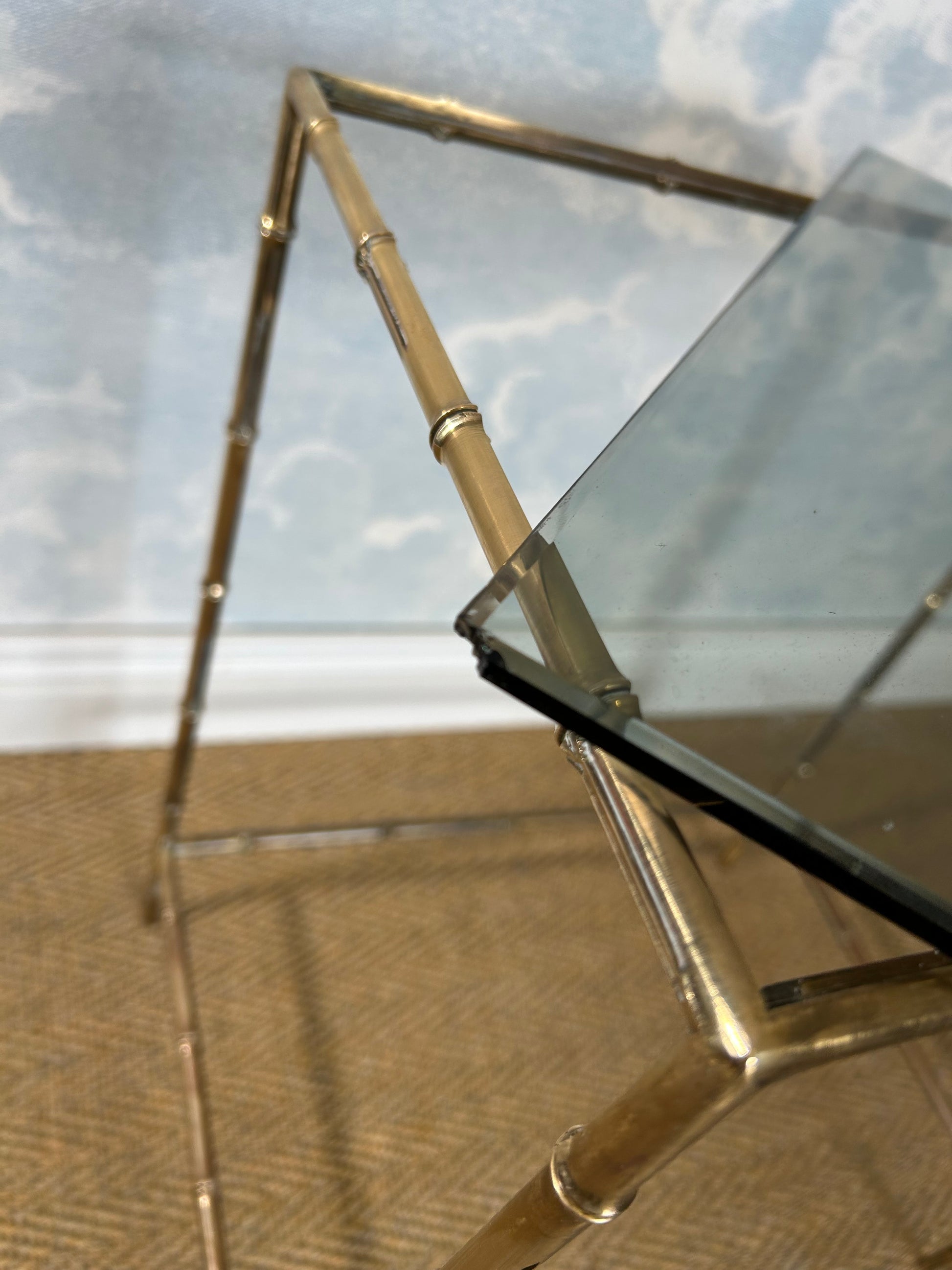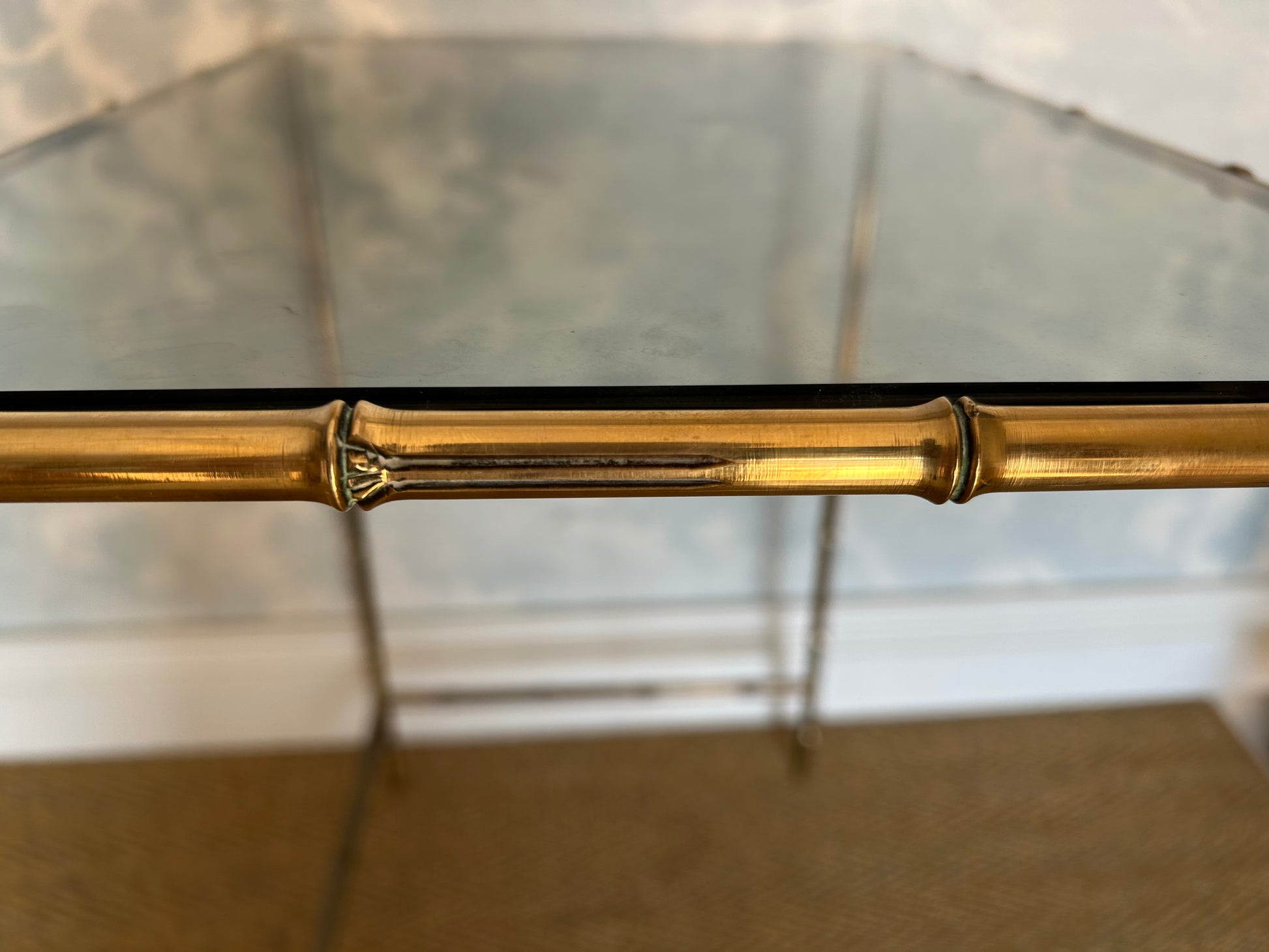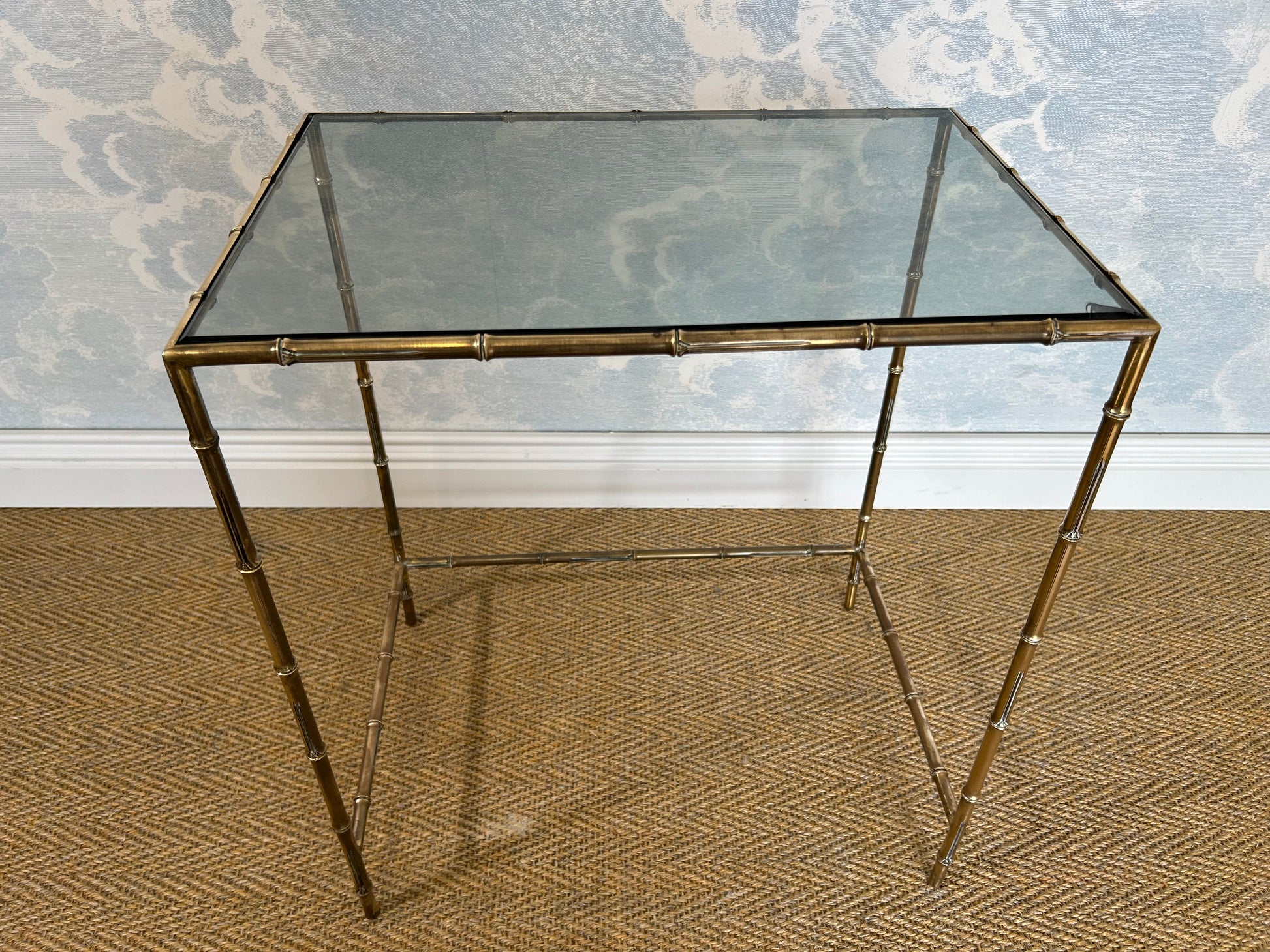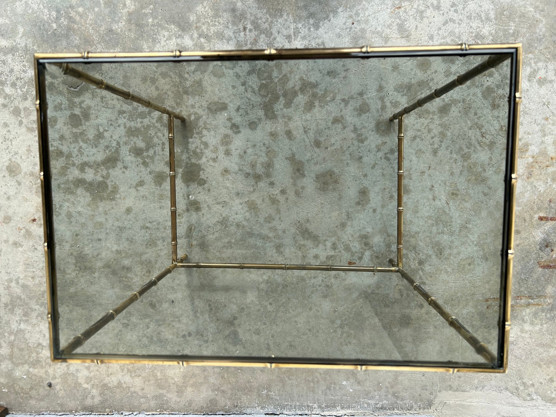 Faux Bamboo End Table with Smoked Glass on Brass Frame, in the Style of Maison Jansen, France, 1970s, Hollywood Regency