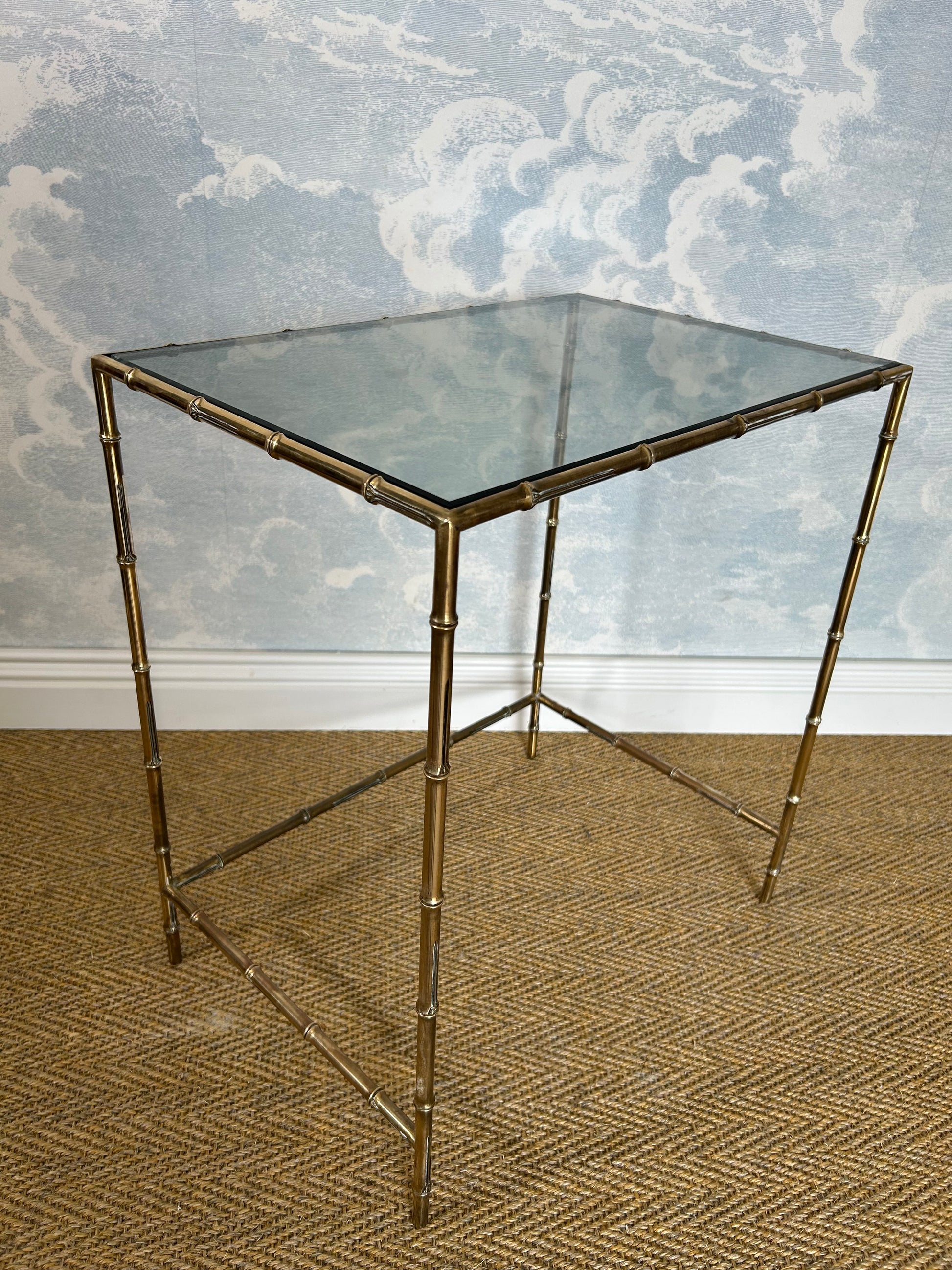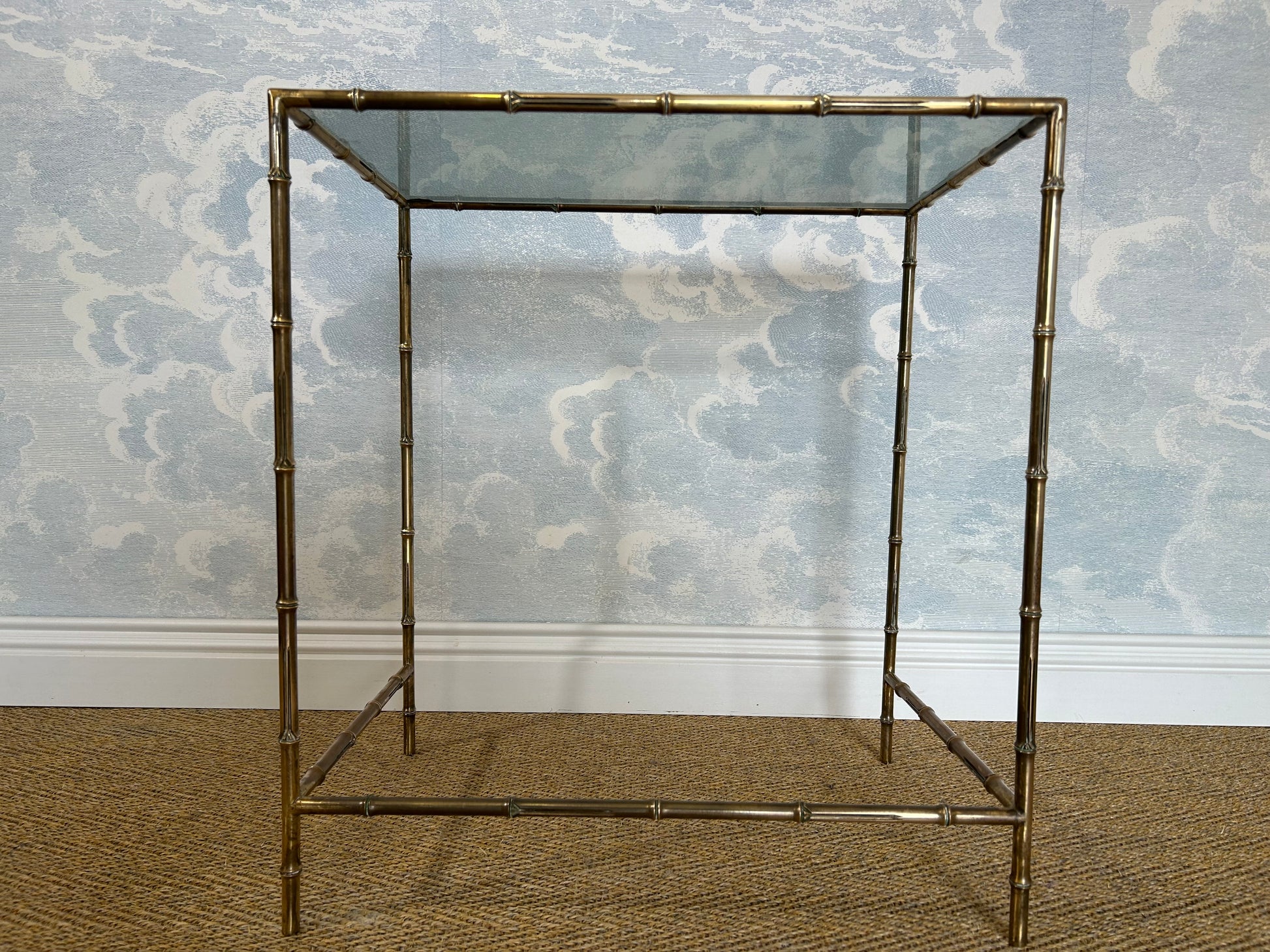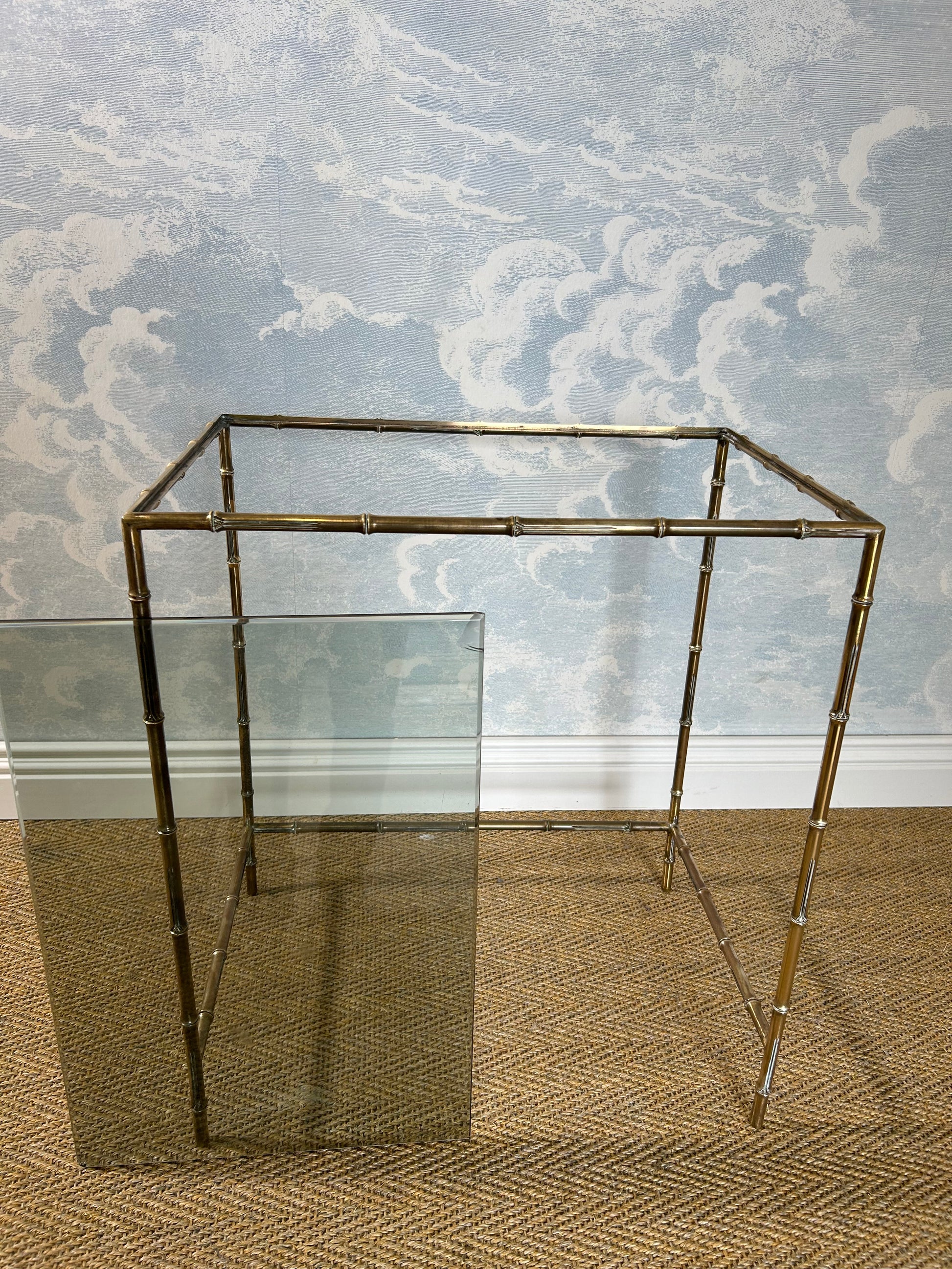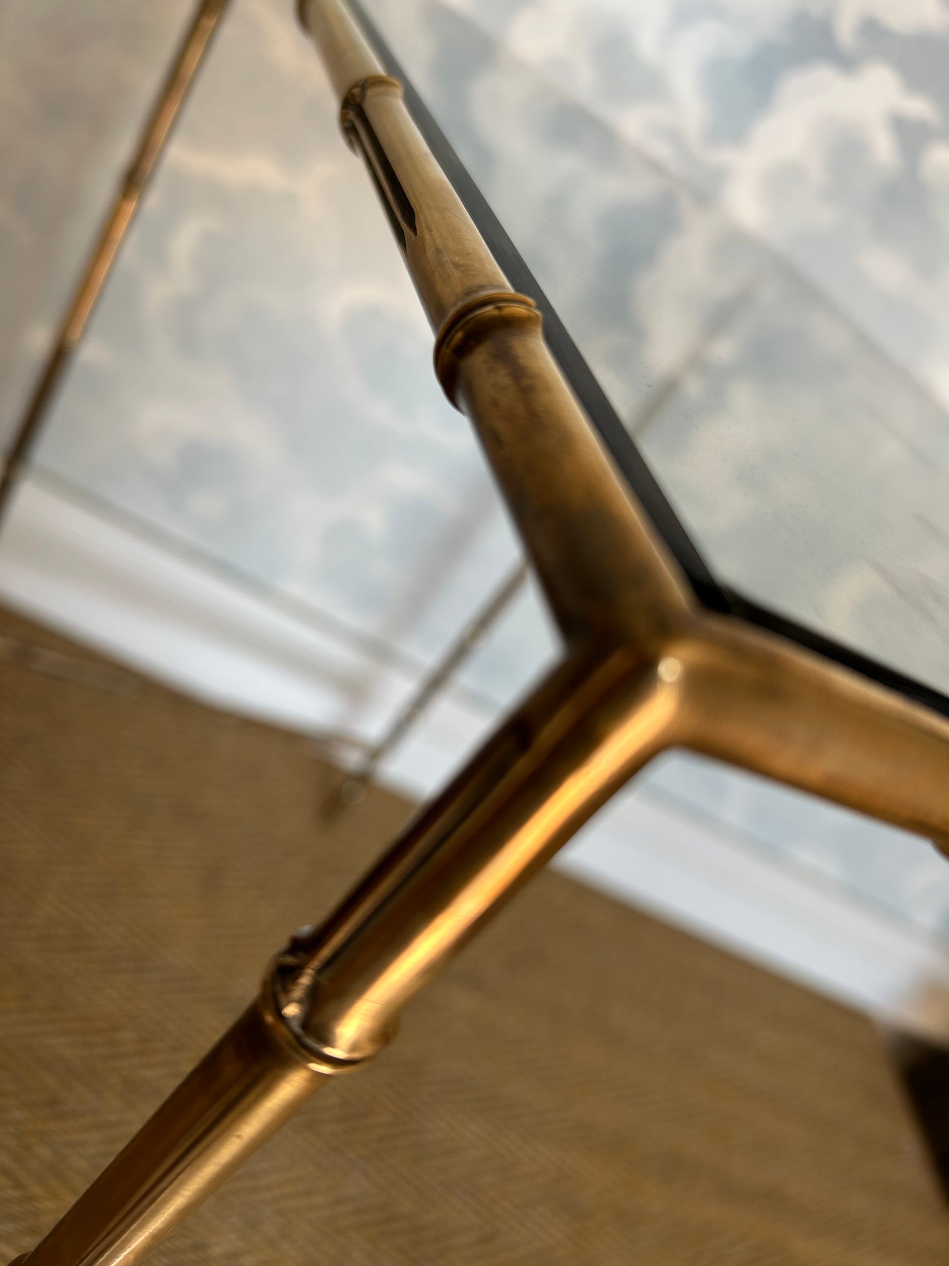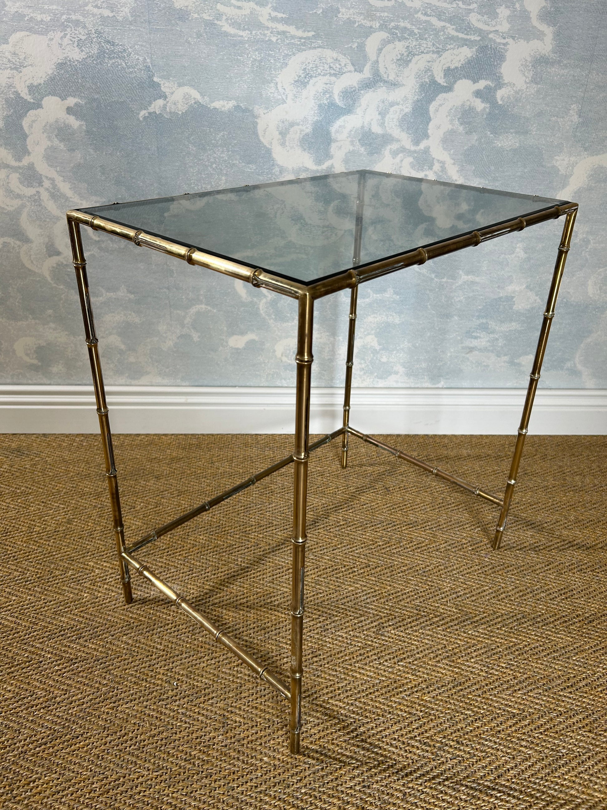 Faux Bamboo End Table with Smoked Glass on Brass Frame, in the Style of Maison Jansen, France, 1970s, Hollywood Regency