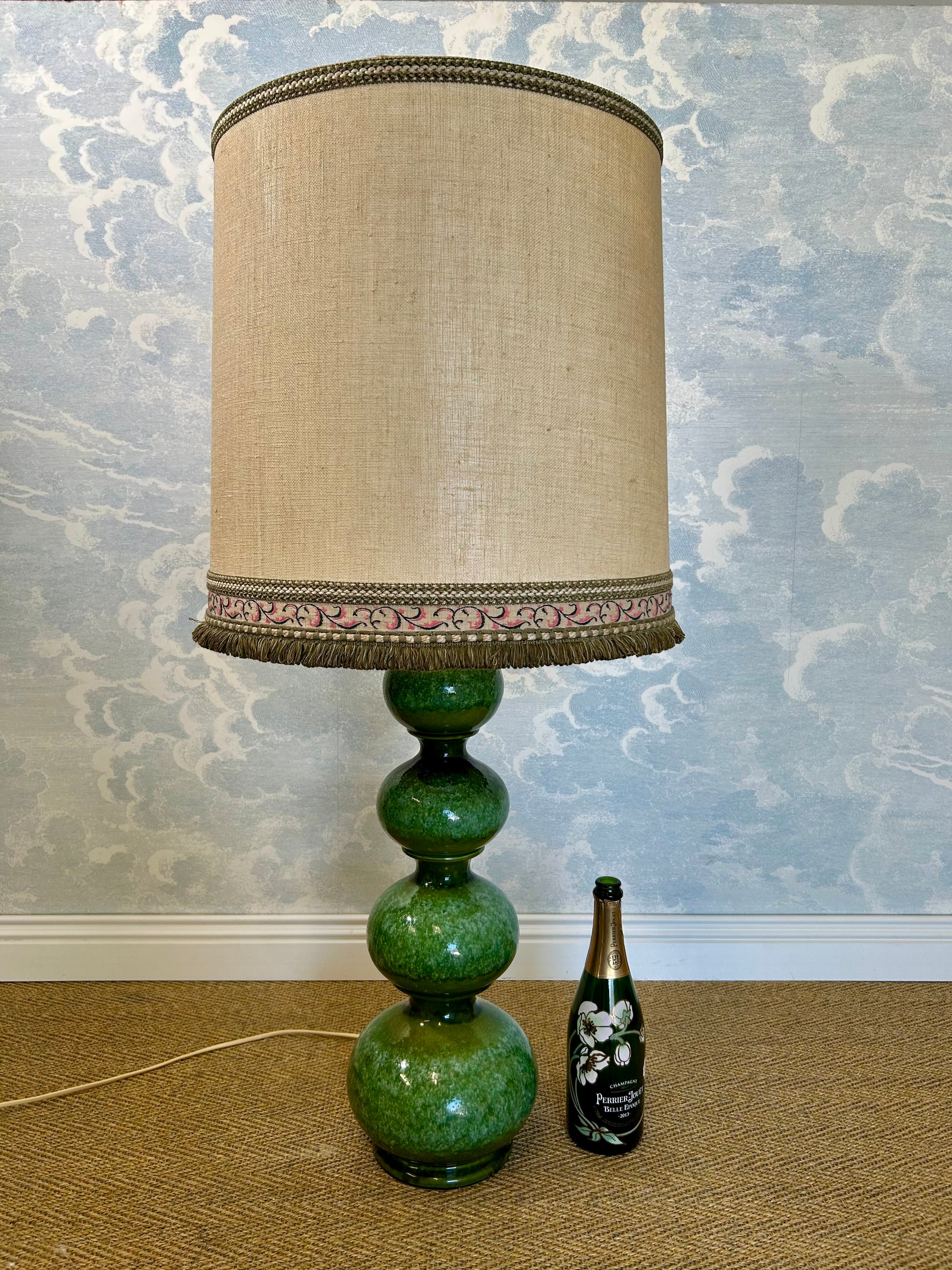 Green Ceramic Floor / Table Lamp, Kaiser Leuchten, Germany, 1960s Mid-Century Elegance