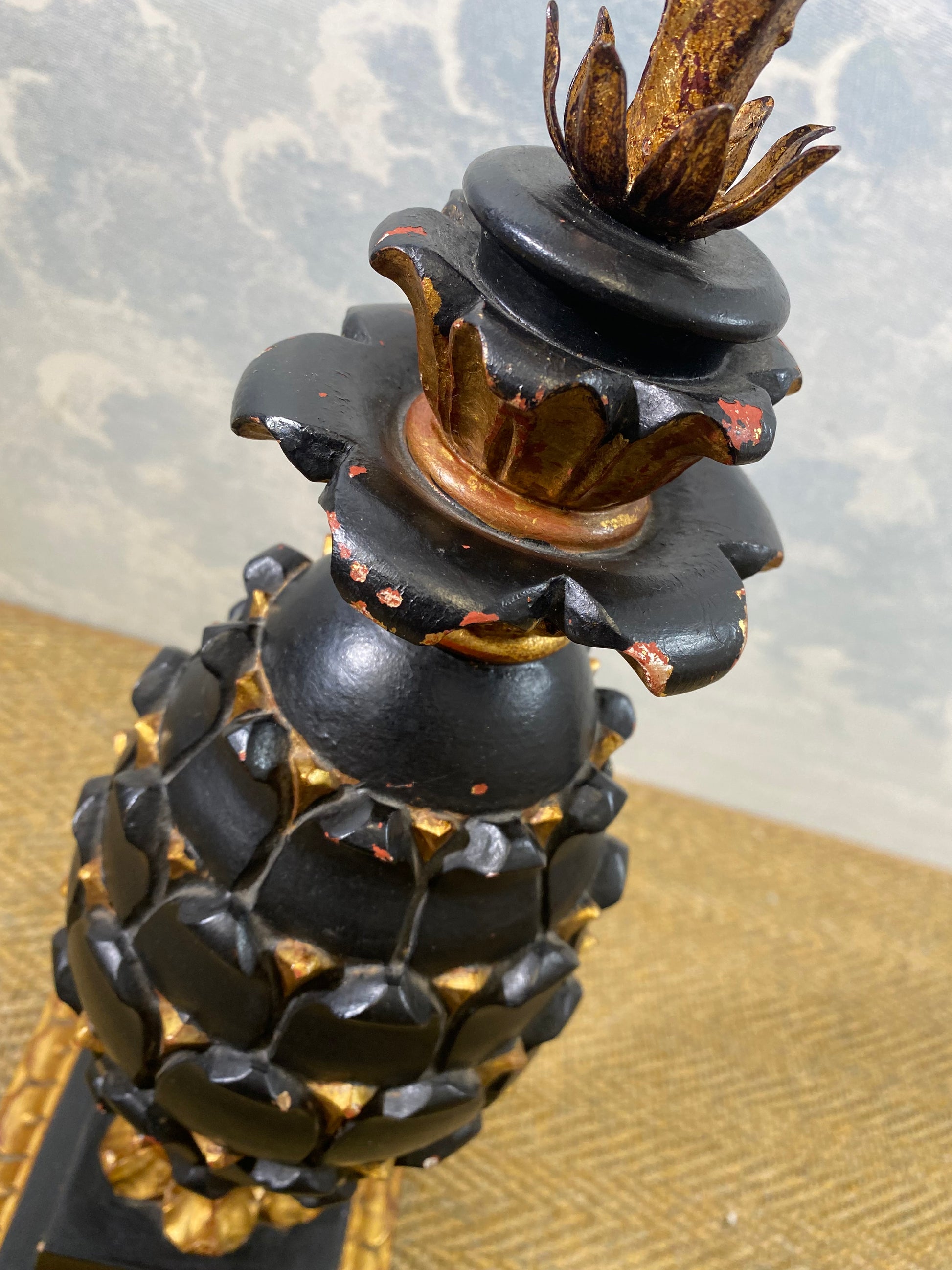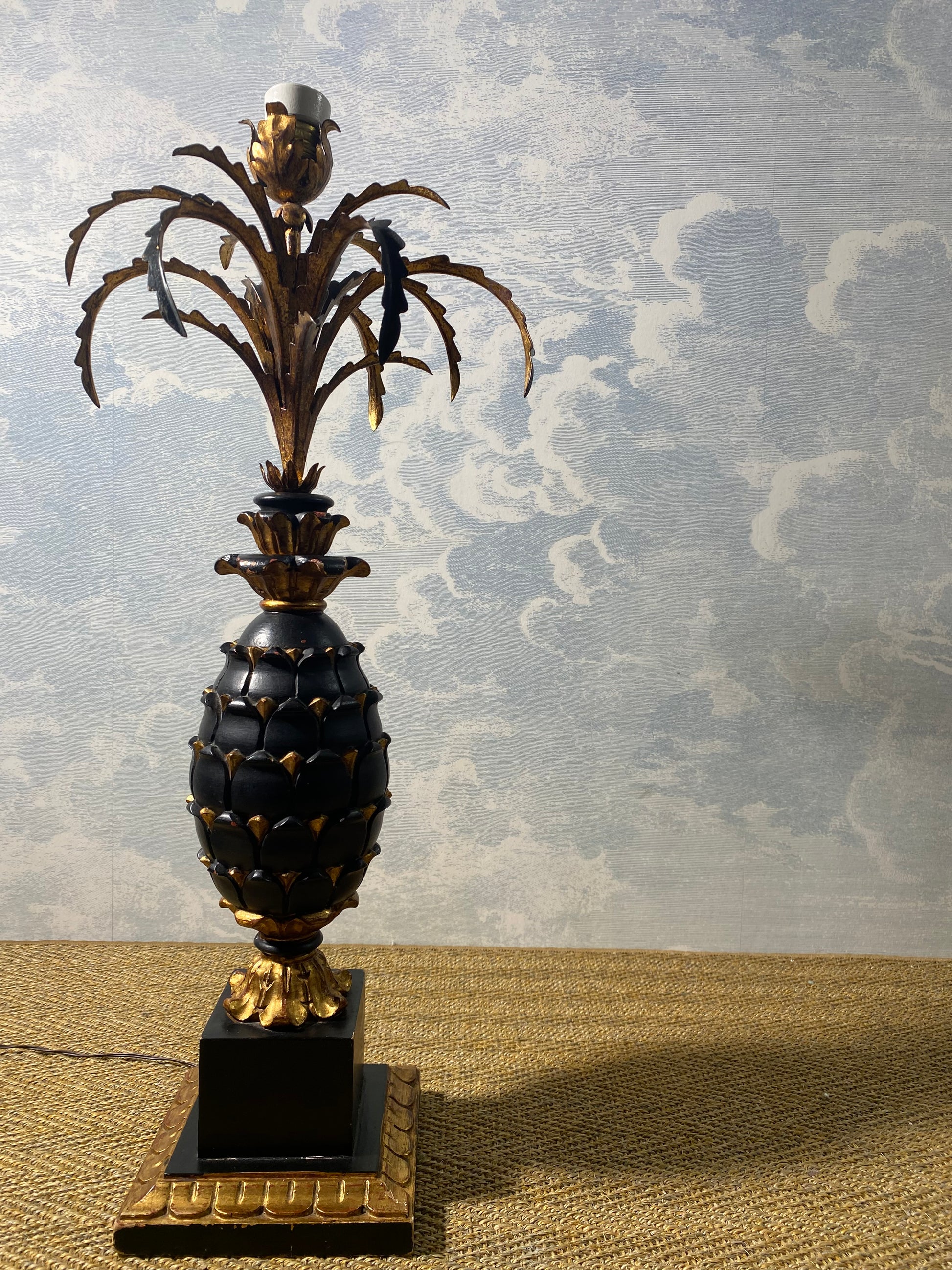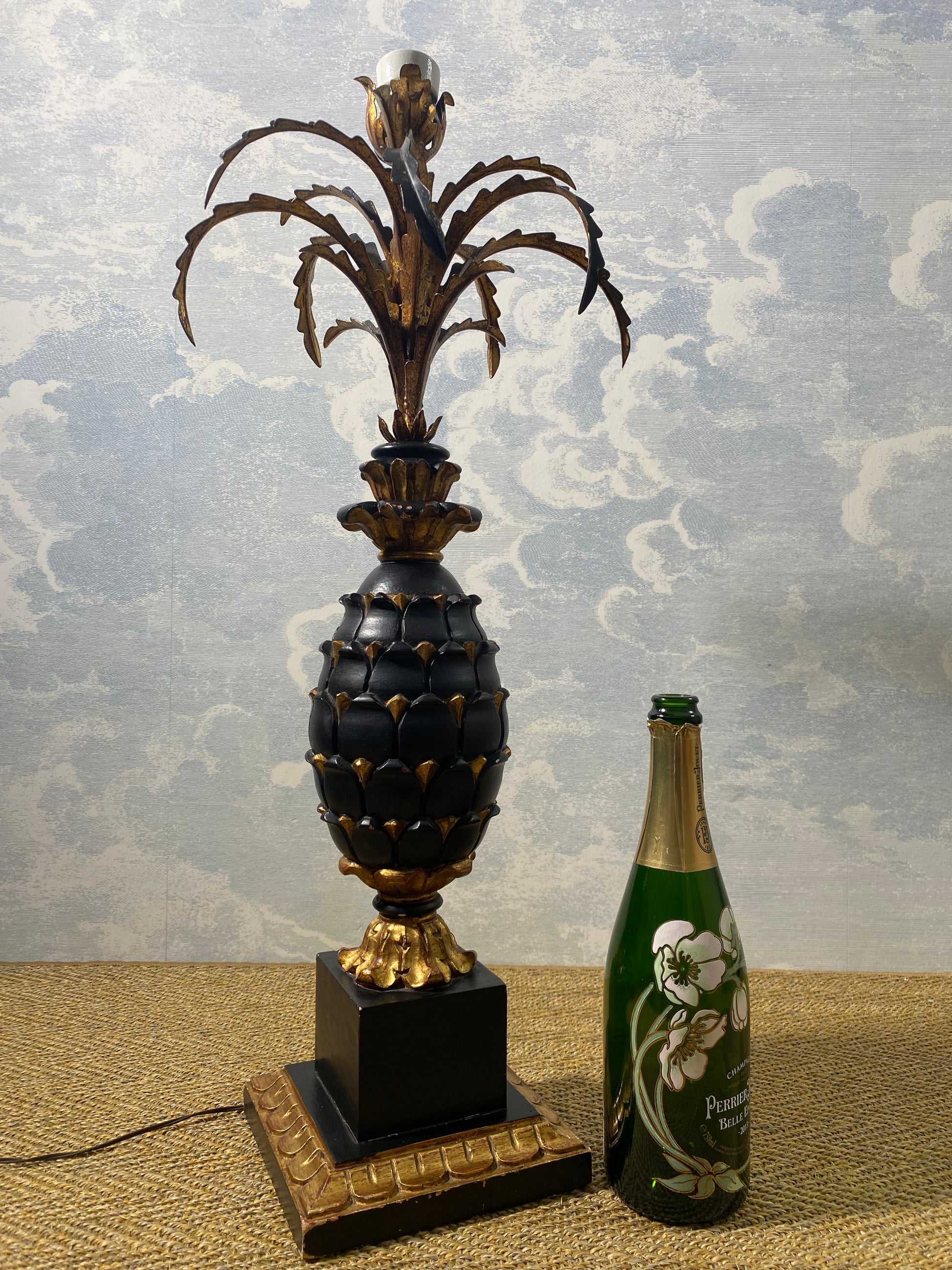 Large Carved Wood Pineapple Table Lamp in Black and Gold, France, early 20th Century