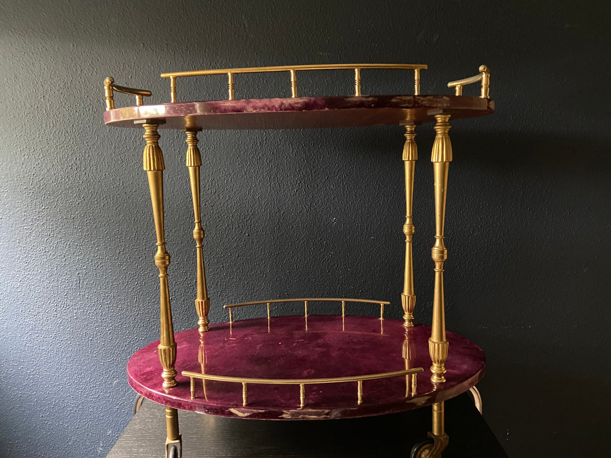 Unlike most Aldo Tura bar carts this super rare find is Aubergine (Eggplant) colored!