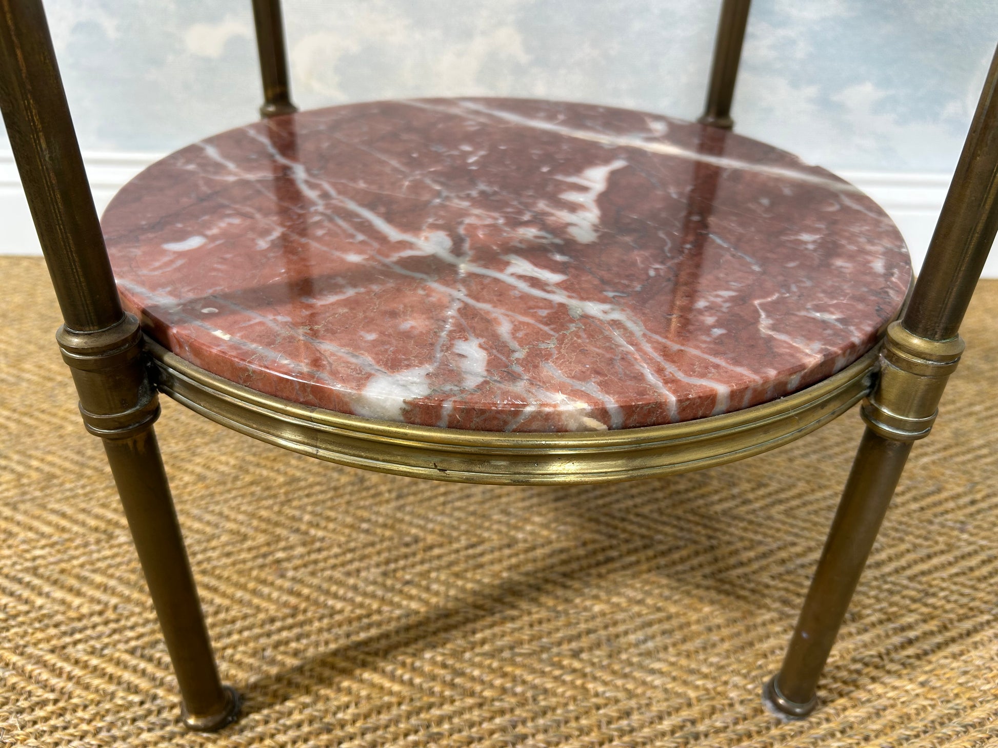Two-Tiered Emperador-Marble Gueridon on Brass Frame, 1970s