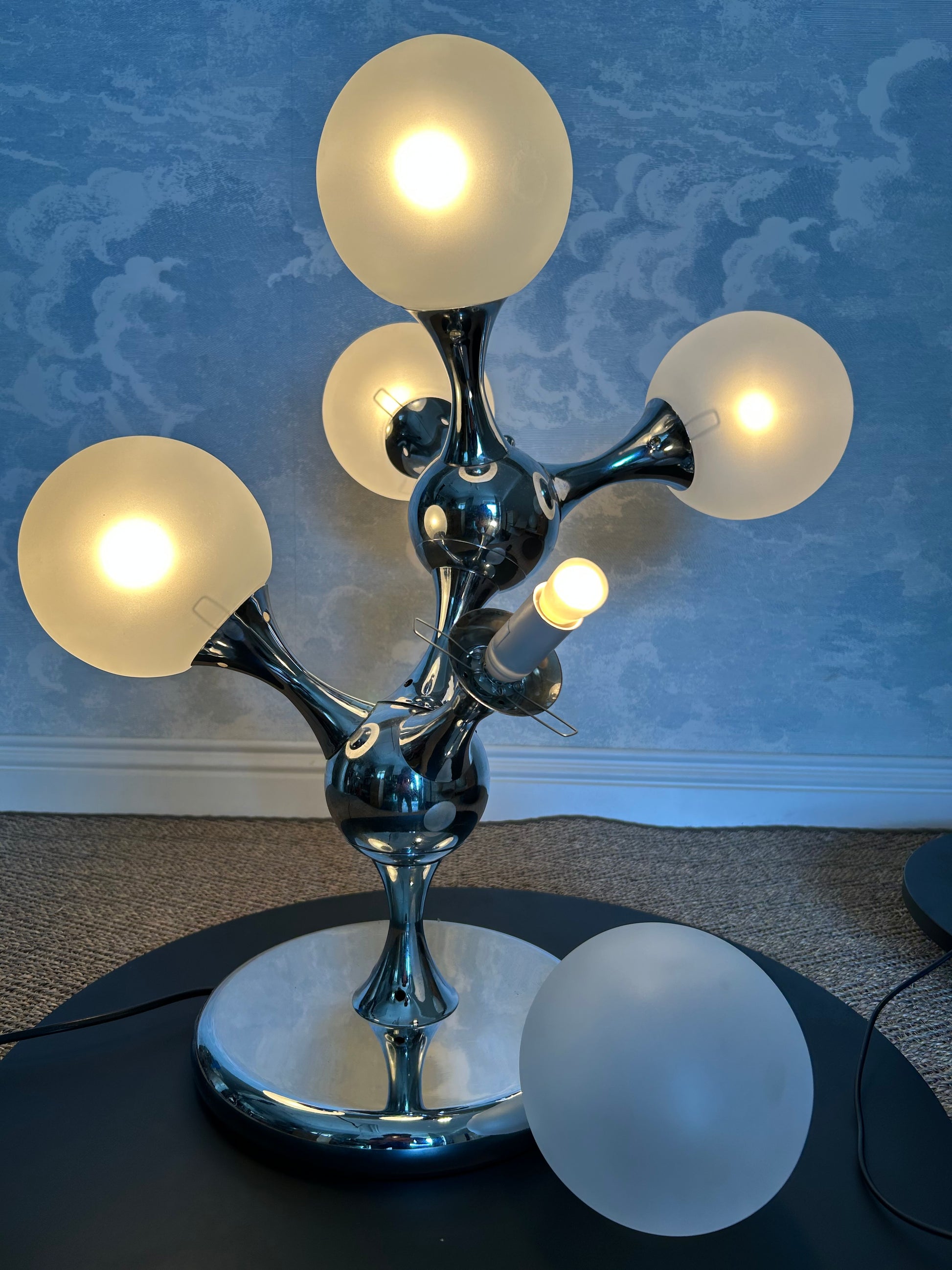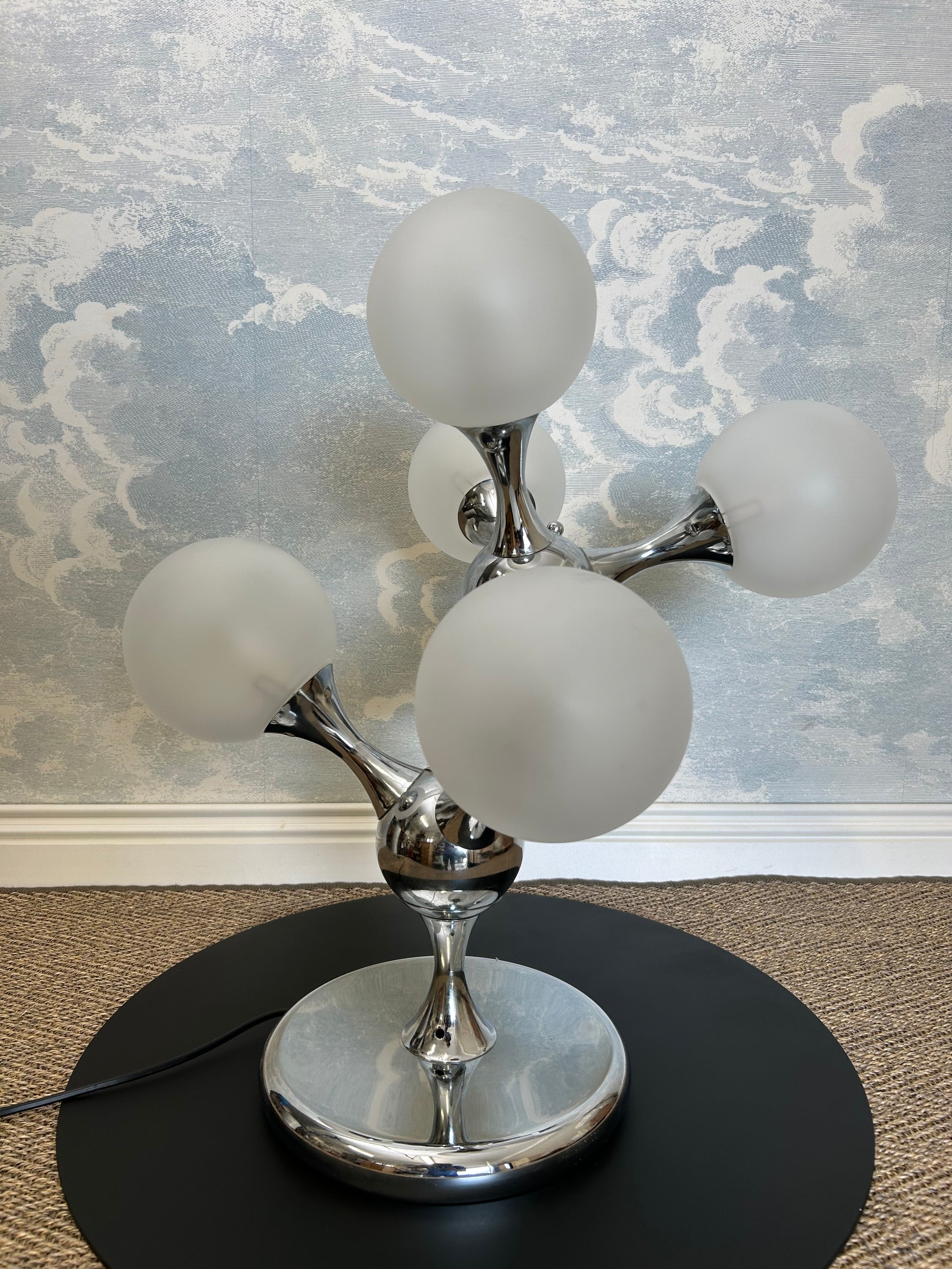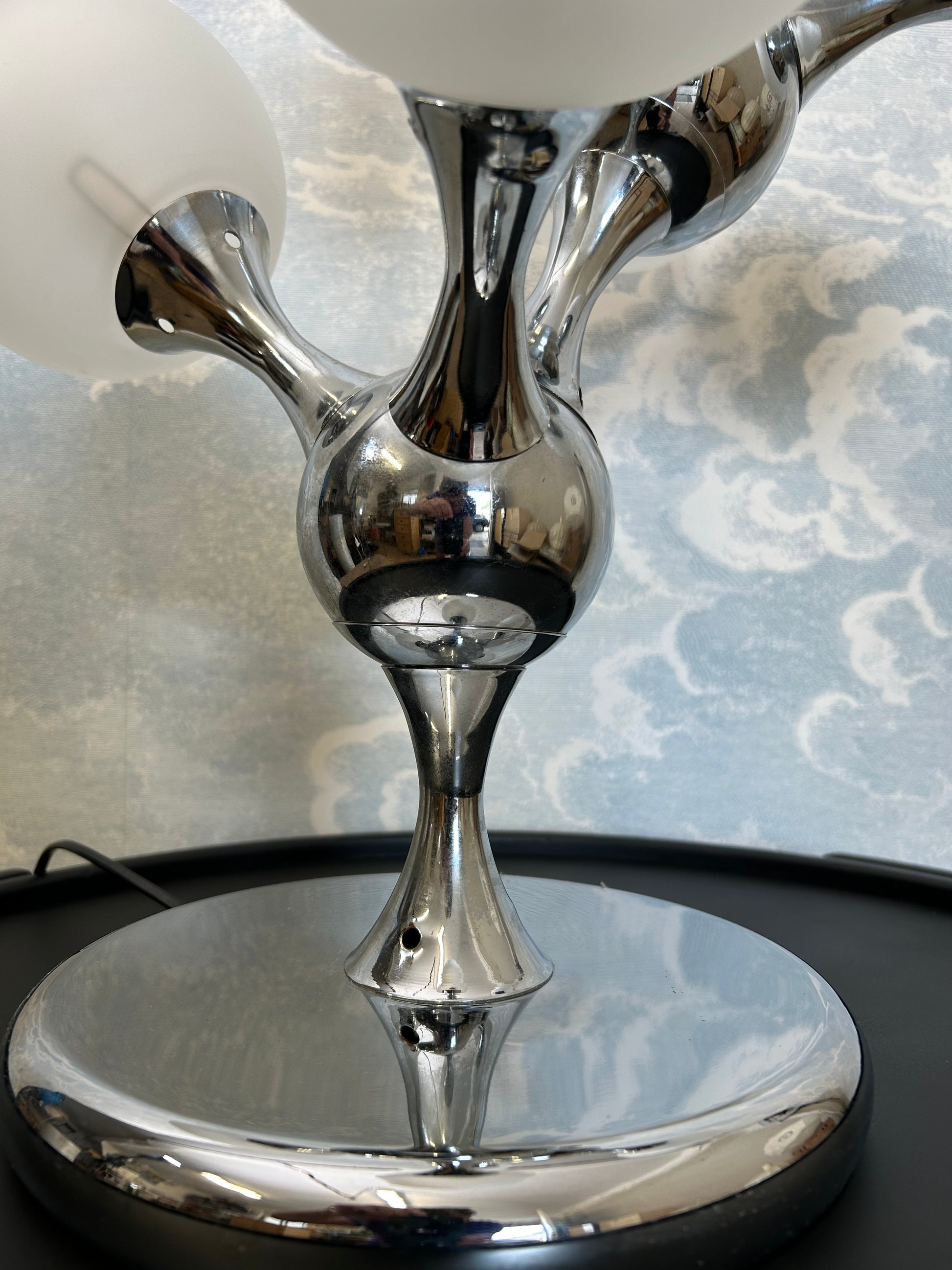 Unique Table Lamp with Chrome Frame and Opaque Glass Globes, 1970's, Space Age, Atomic Age, Sputnik